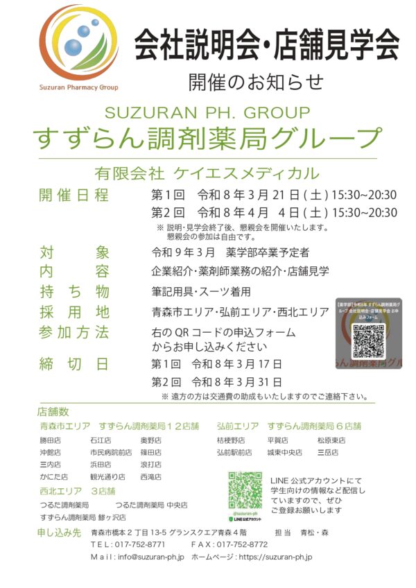 【薬学部】令和8年 会社説明会・店舗見学会|開催のお知らせ