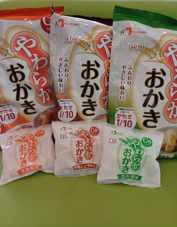 一般的なおかきと比べて硬さ10分の1。さらにカルシウム入りです!