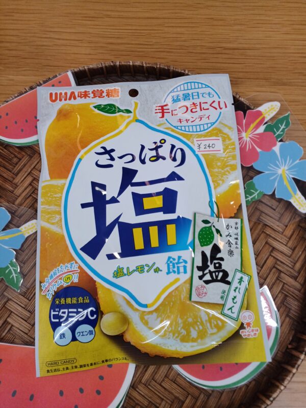 塩分補給に!塩飴★ 2025.05.29 つるた調剤薬局 ブログ 皆さんこんにちは。 暑い日が多くなってきました。 水分、塩分とれていますか? そこで、つるた調剤薬局おすすめの塩飴を紹介します☆ 今回紹介する商品はこちらの塩飴です 甘塩の塩あめ ~りんご酢味~ 甘酸っぱいりんご酢味でおいしいです さっぱり塩 ~塩レモン味~ ビタミンC入りでさっぱりしています。 どちらもすっきりした味わいで食べやすいので是非食べてみてください!! お買い物だけでもお気軽にお越しください(^^♪ 投稿ナビゲーション 前へ健康サポートにもっちり麦!!次へマイサイズ食べてみませんか??