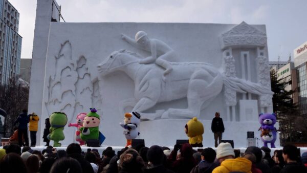 今年は馬年ということもあり、札幌競馬場をモチーフにした雪像も登場していました。